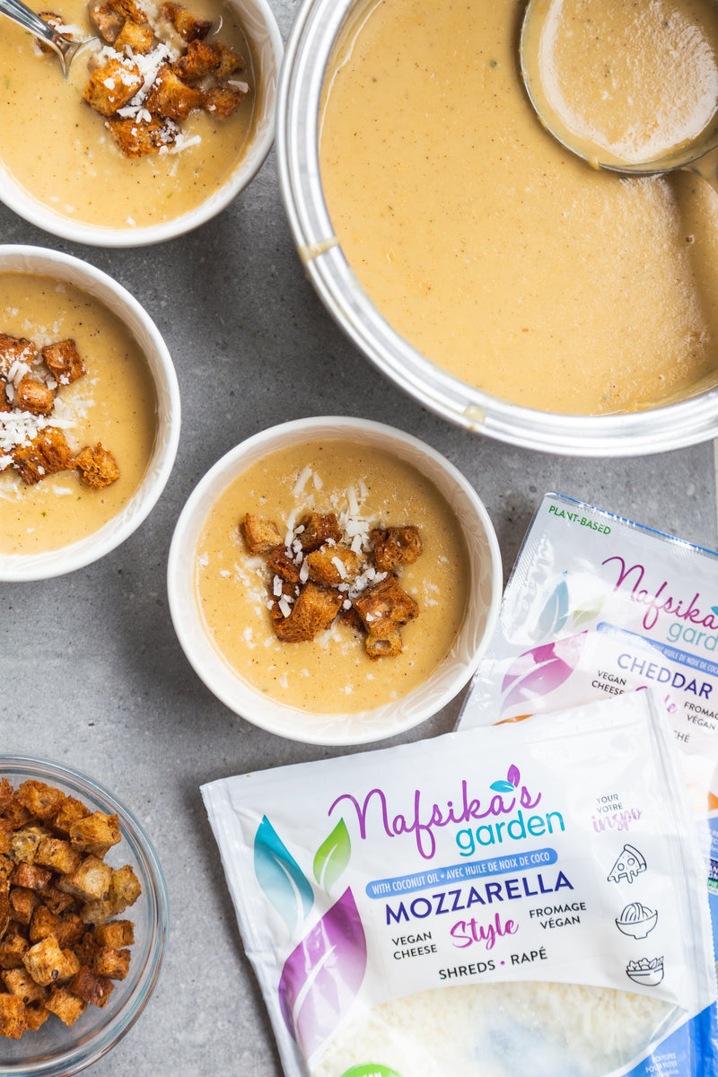 soupe crémeuse au chou-fleur, soupe de chou-fleur à base de plantes, soupe de chou-fleur rôti, soupe de chou-fleur végétalienne, soupe de chou-fleur sans produits laitiers, nourriture réconfortante à base de plantes, fromage du jardin de Nafsika, soupe à la mozzarella végétalienne, fromage végétalien de style cheddar, recette de soupe de chou-fleur facile, soupe végétalienne saine, soupe à l'ail rôti, soupe de chou-fleur sans gluten, idées de dîner à base de plantes, soupe au fromage végétalienne, soupes végétaliennes copieuses, recettes d'hiver à base de plantes, soupe au fromage sans produits laitiers, soupe crémeuse végétalienne, soupe au fromage de chou-fleur, soupe de légumes à base de plantes, soupe de préparation de repas végétalien, soupe de bouillon de légumes, nourriture réconfortante au fromage végétalien, soupe de chou-fleur avec croûtons